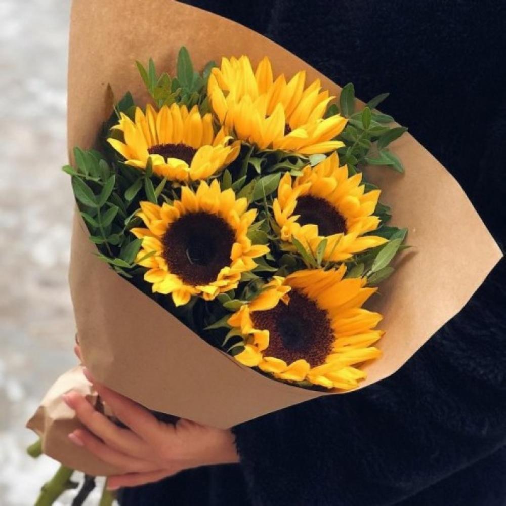 Букет из подсолнухов в крафте