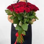 Эффектный букет из 45 роз будет уместен на подарок роскошной женщине. Также таким букетом можно признаться в своих самых искренних чувствах.