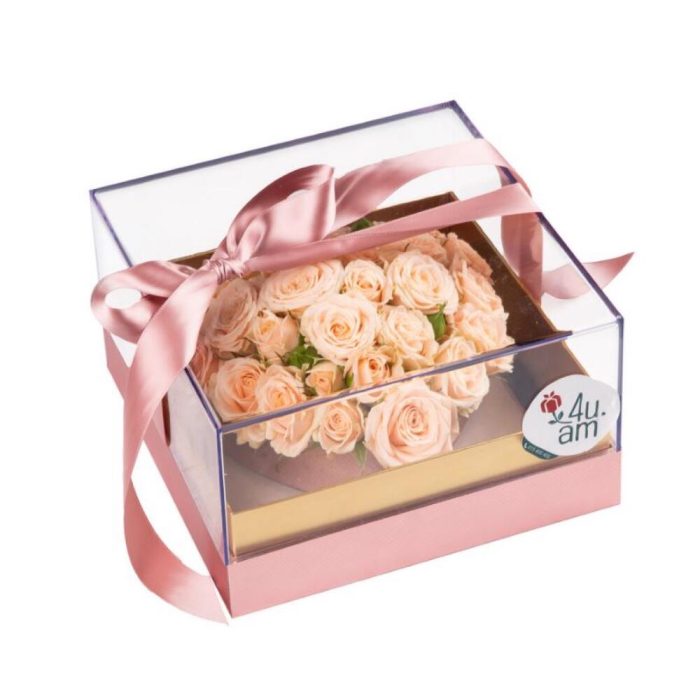 “Атлас☁️” – цветочная композиция с зефиром в деревянном ящике