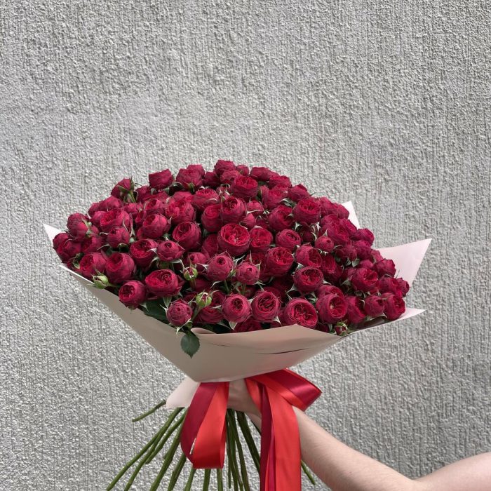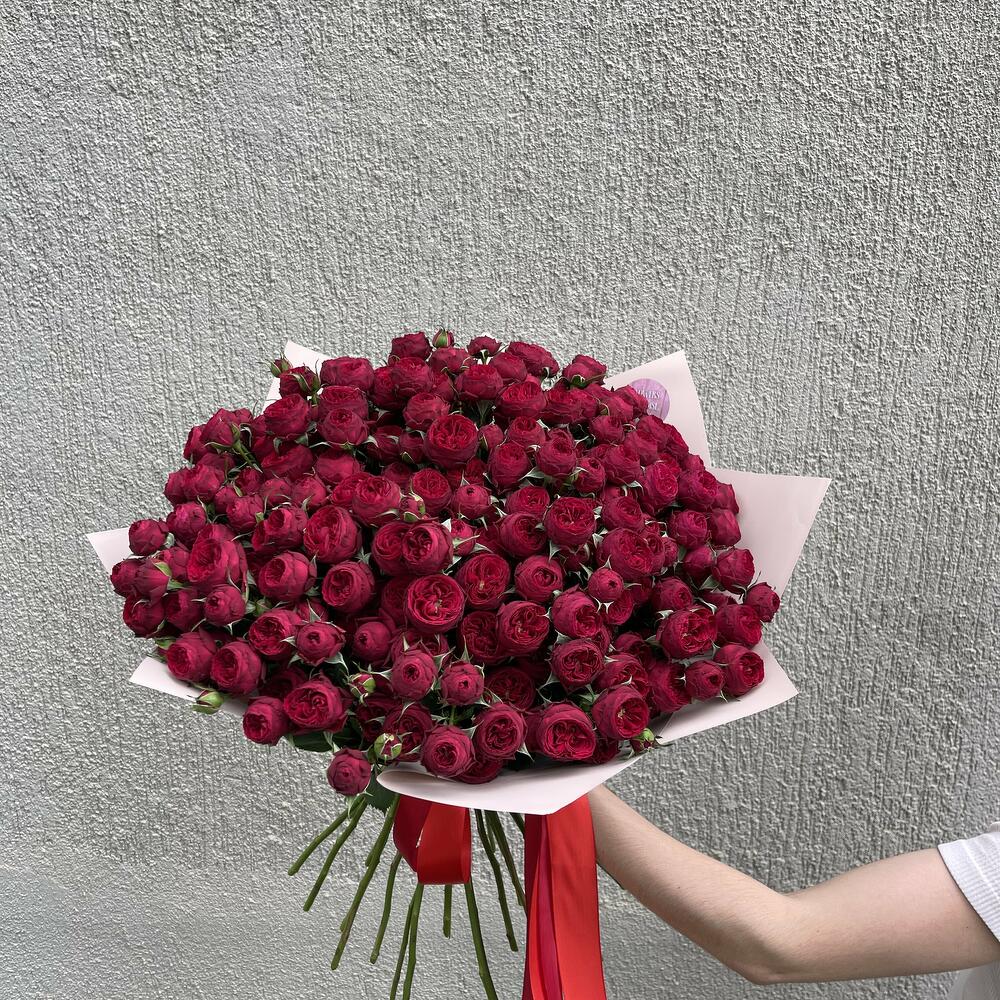 Монобукет из красной кустовой розы